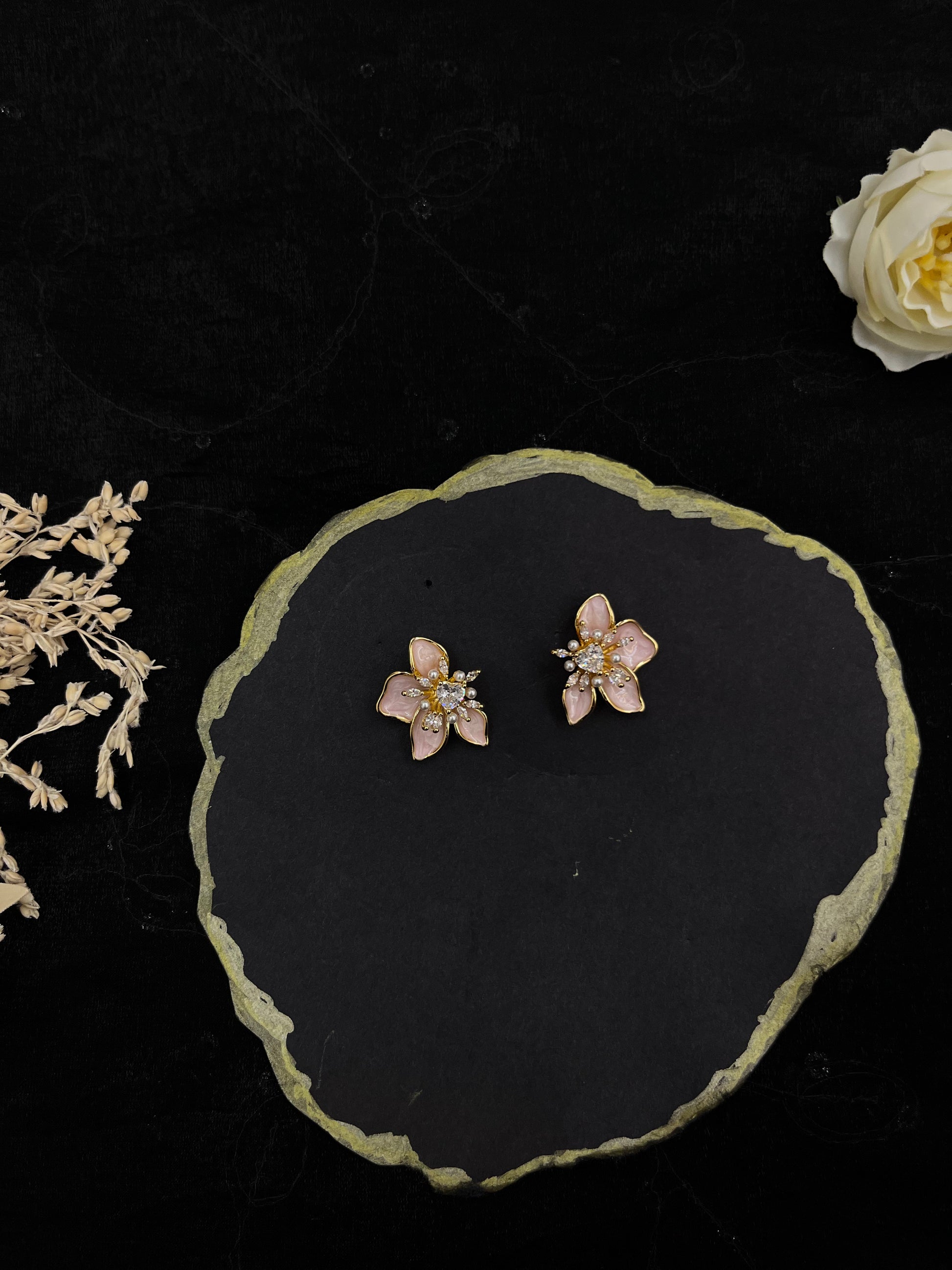 Bring a garden of elegance to your look with our Blush Bloom Earrings — where delicate femininity meets everyday luxury. Featuring soft pink enamel petals edged in gold and a sparkling cluster of cubic zirconia at the center, these floral studs are a romantic nod to nature’s beauty.