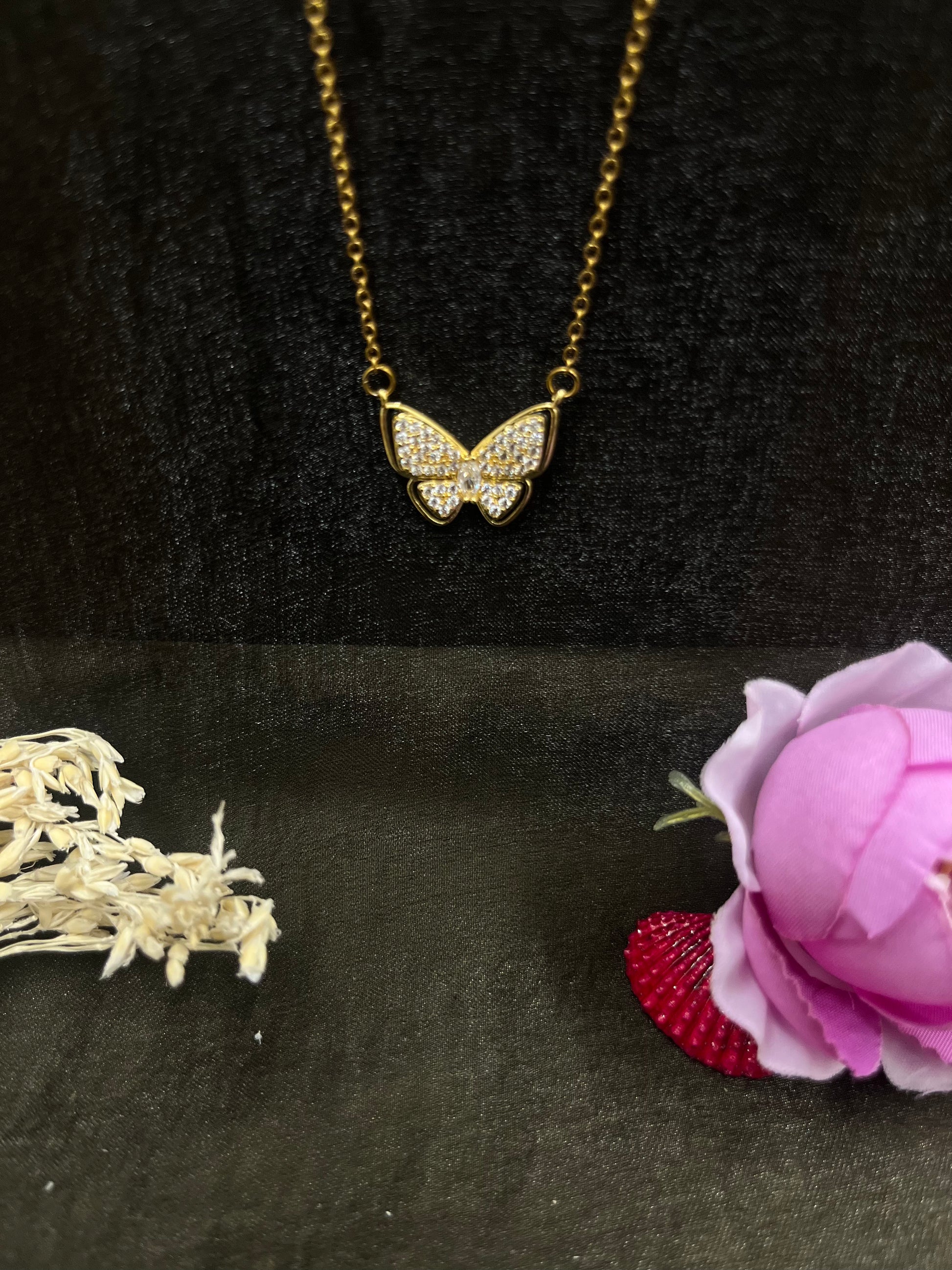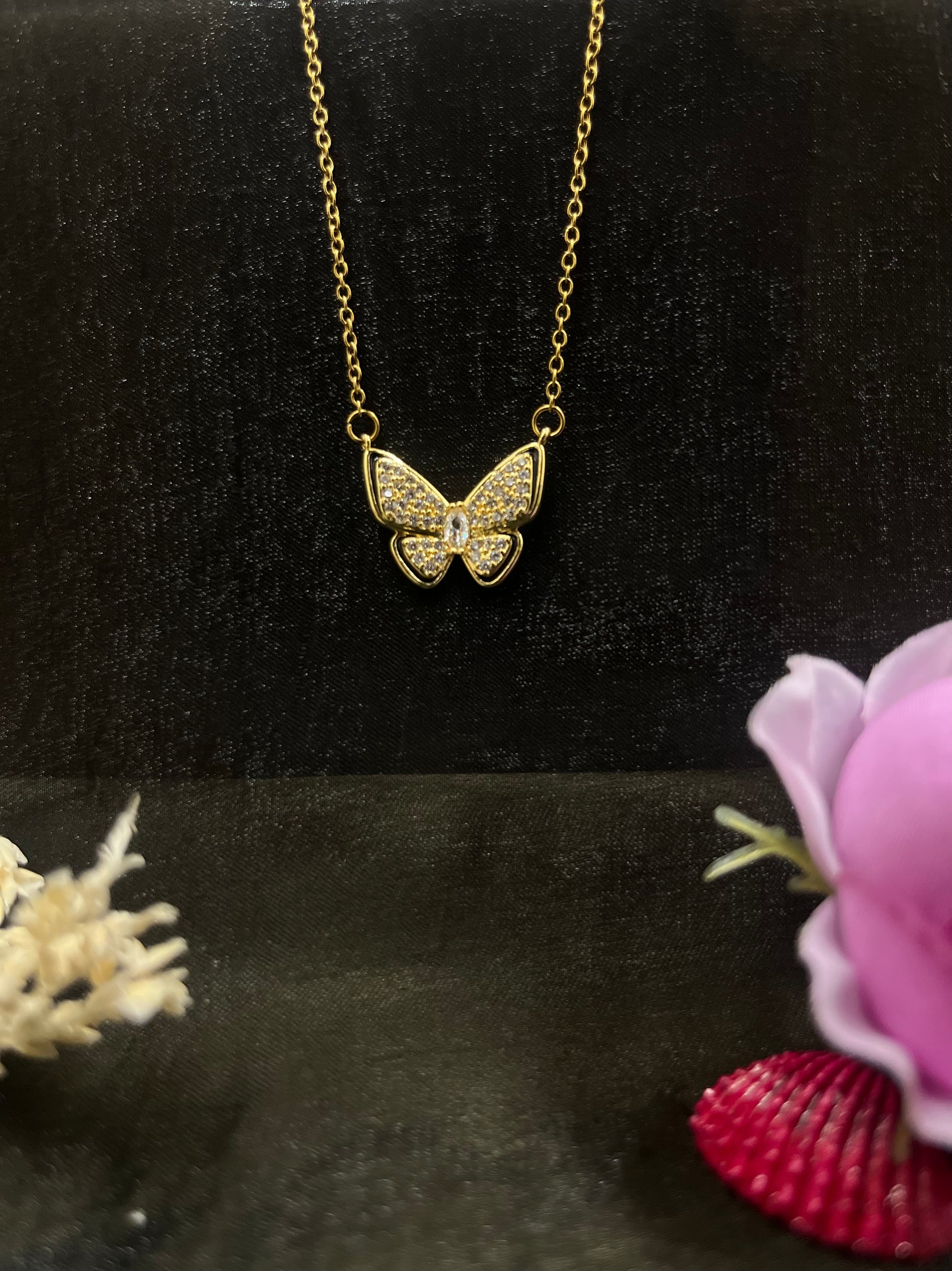 Delicate, graceful, and full of charm – our Flutter Gold-Plated Butterfly Pendant is designed to add a touch of magic to your everyday style. Adorned with shimmering stones, this pendant captures the beauty of transformation and elegance in one piece.