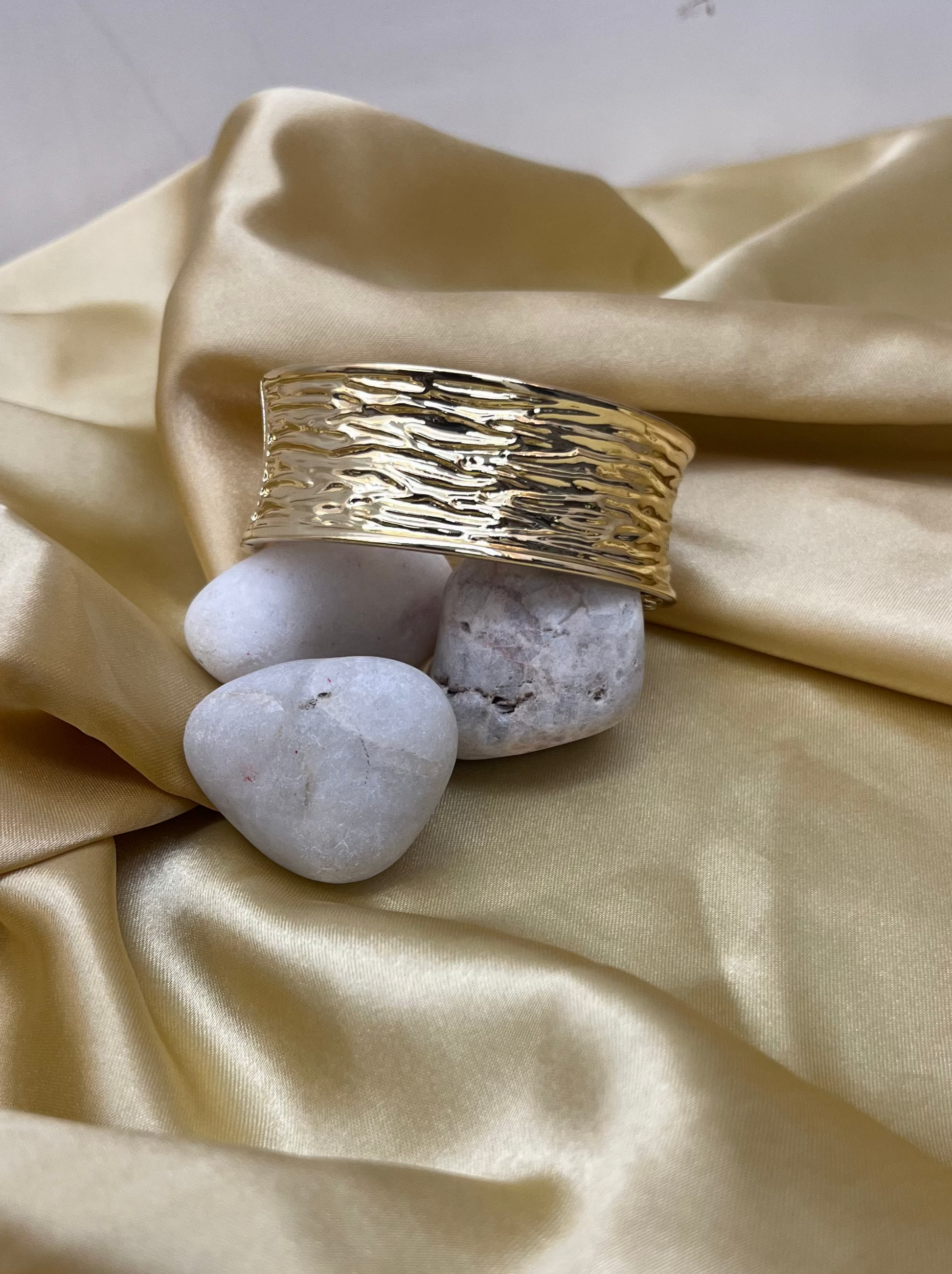 Add a touch of bold sophistication to your look with our Golden Aura Cuff. Handcrafted with a textured finish and plated in radiant gold, this piece is designed to make you stand out effortlessly.