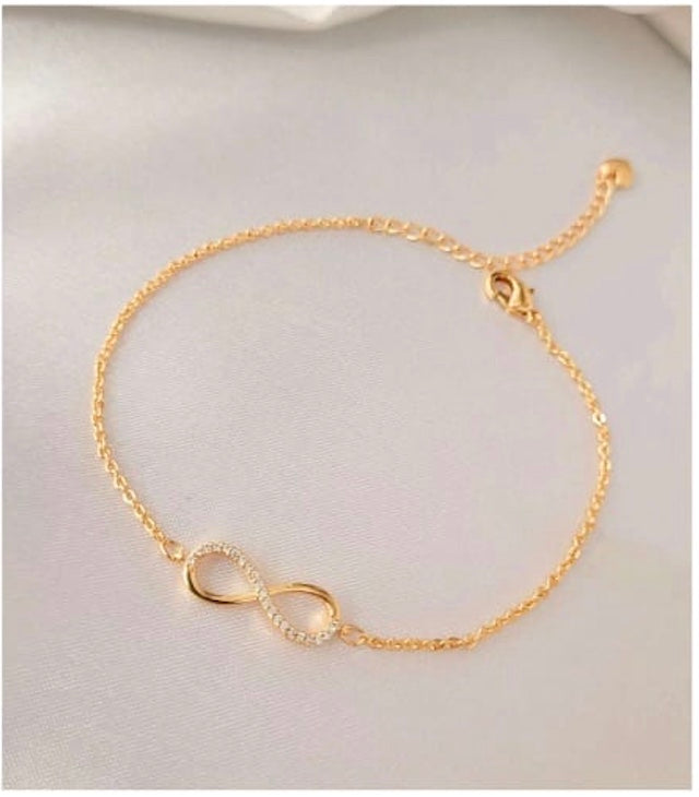Celebrate endless love and everlasting style with our Infinity Bracelet. Designed with a sleek gold finish and adorned with delicate crystal accents, this bracelet is a symbol of forever bonds and infinite beauty.