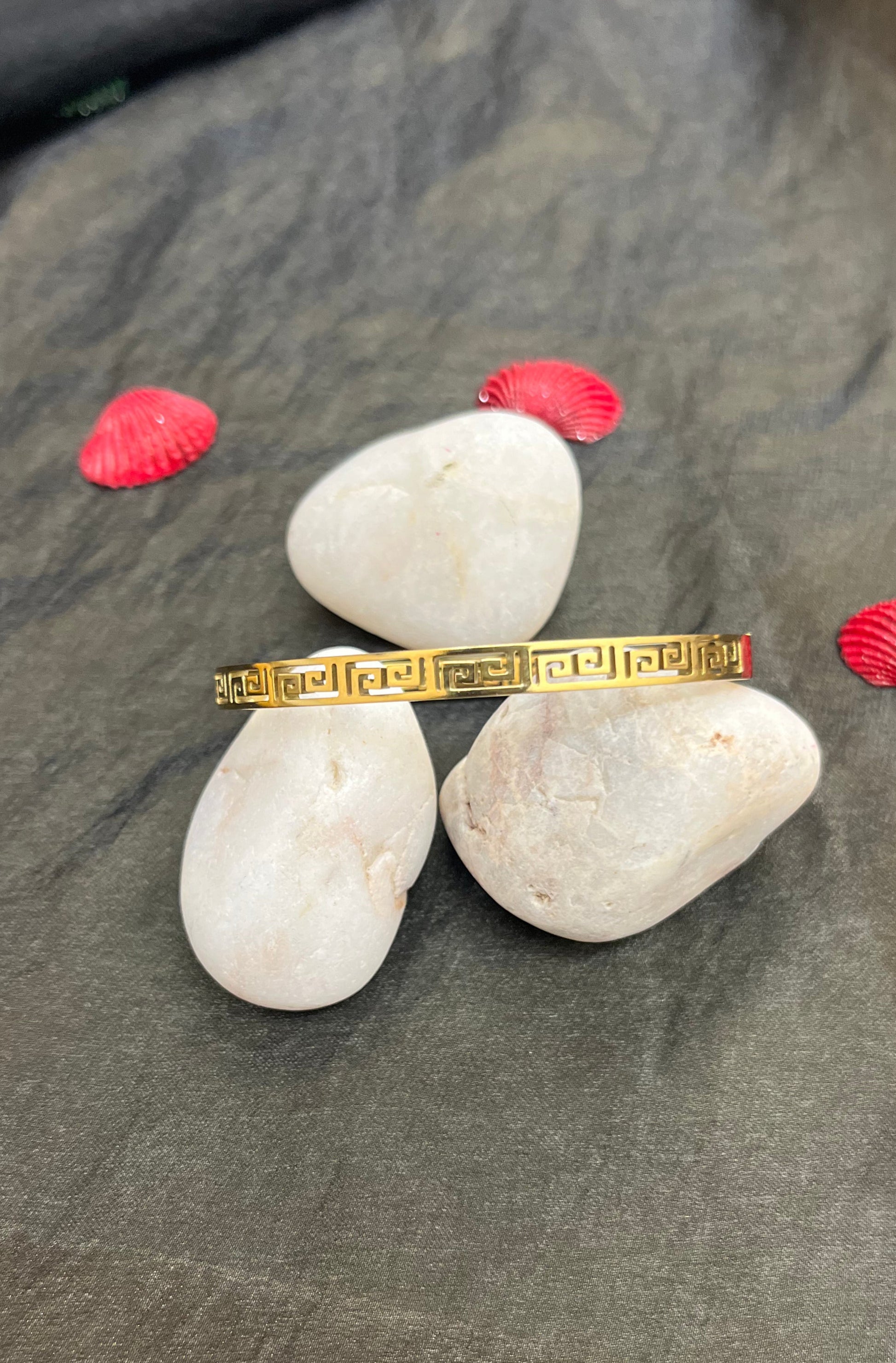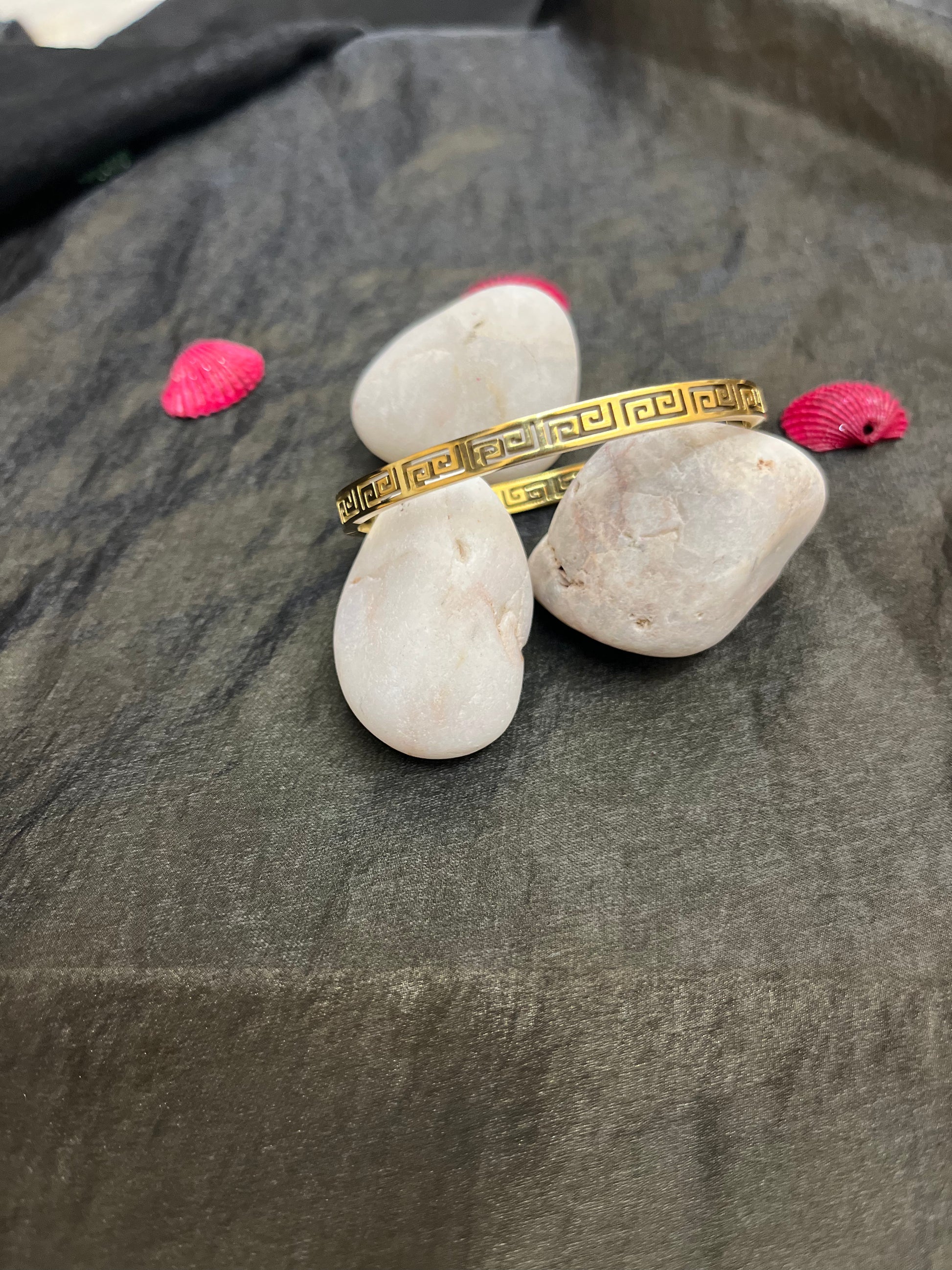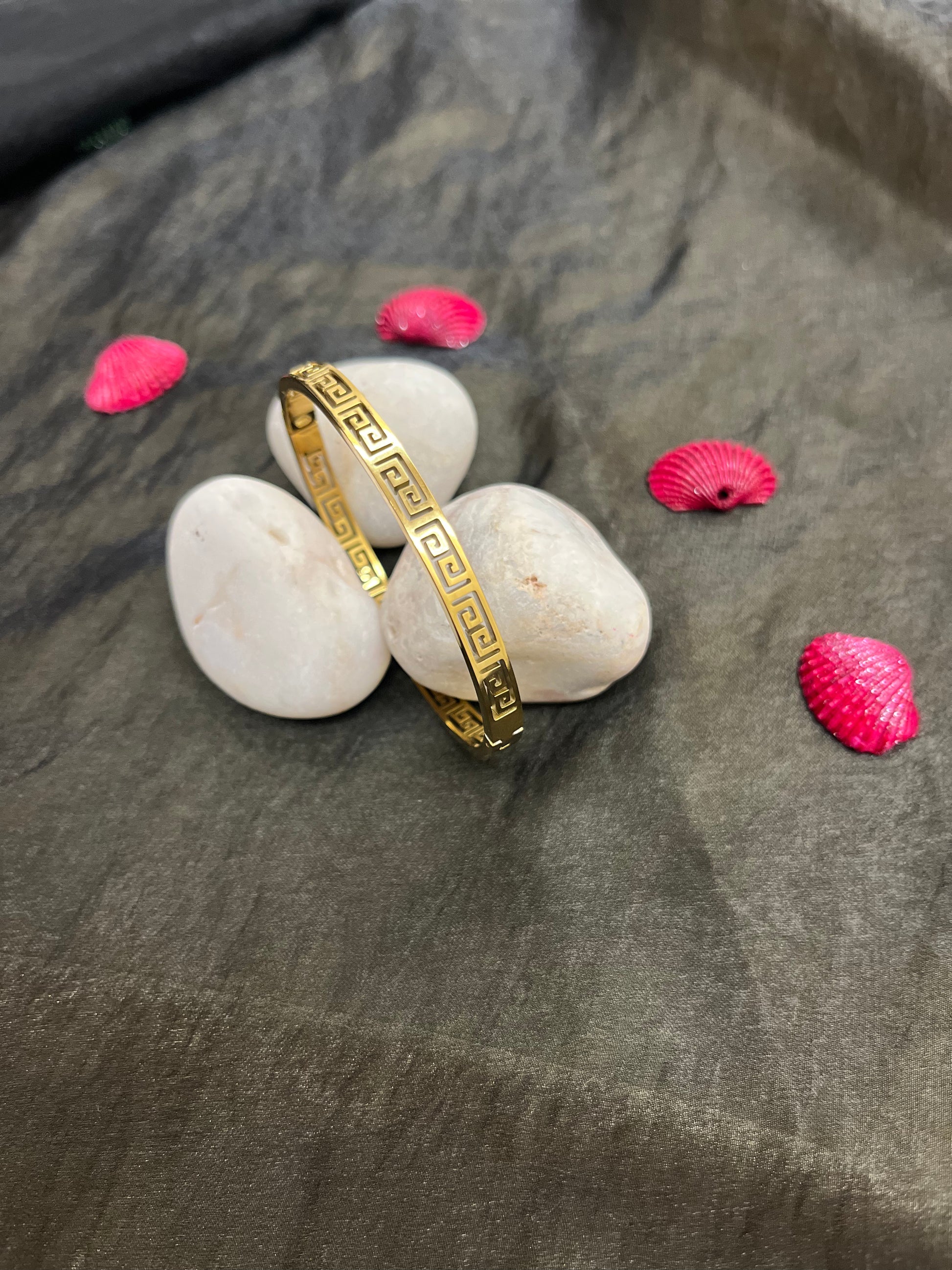 Slim Greek Key Gold Bangle